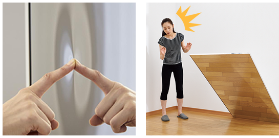 - ガラスミラーより小規模な工事で、壁や天井に貼れる