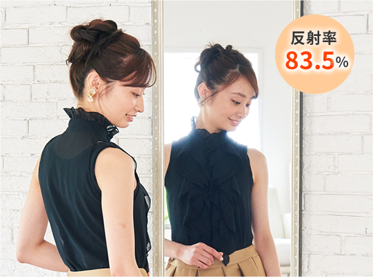 また、反射率83.5%で、ガラスミラーと同等レベルに高いので、明るく映し出します。