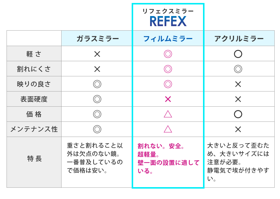 - フィルムミラーと他の鏡の違いは?