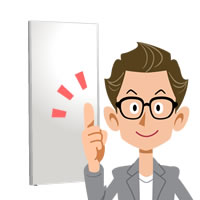 横100×縦150cmのリフェクスミラーに自分を映すとどう見えるのか?をご紹介しています。横100cm(1m)は結構大きいので、実際に置く場所の床にメジャーで1mをあててみて、周囲のジャマにならないか、事前にご確認ください。